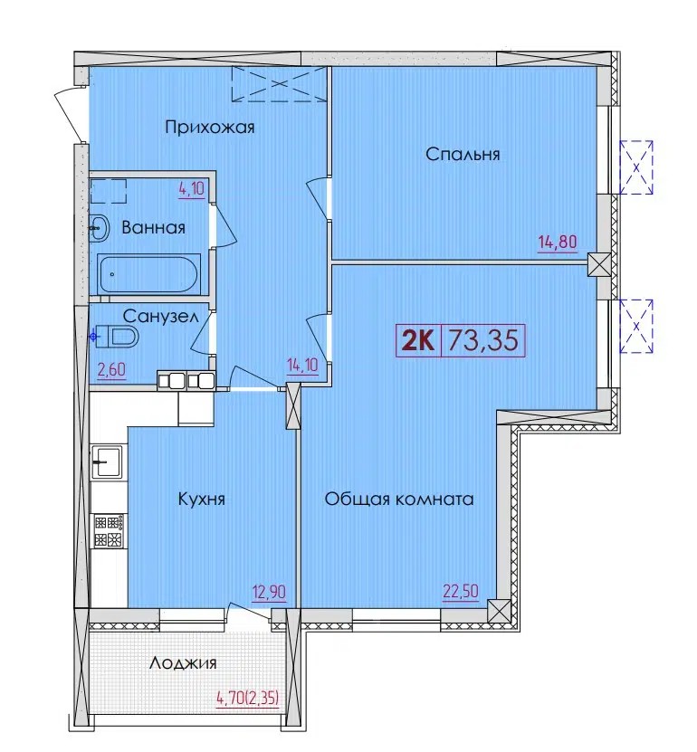 47.75 - 89.8 м²