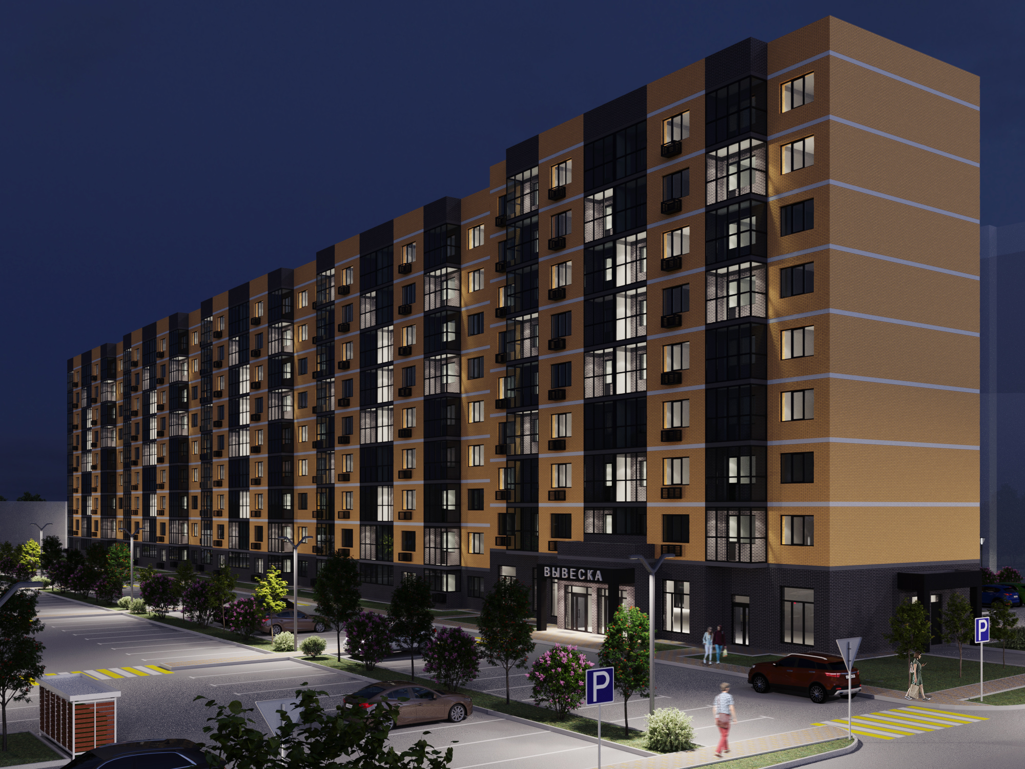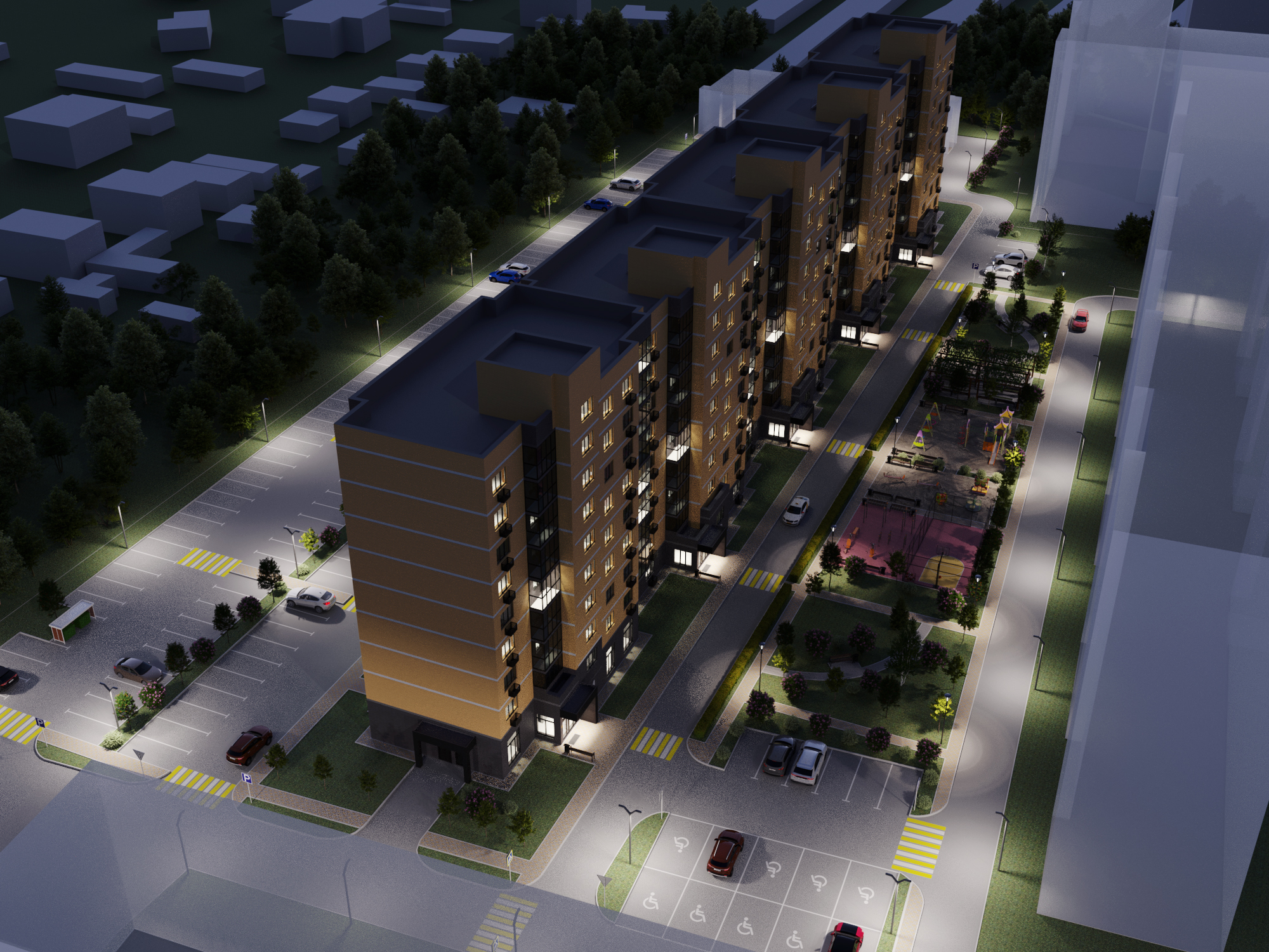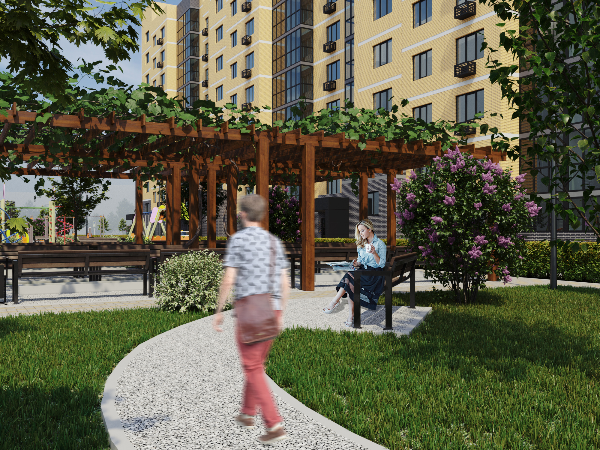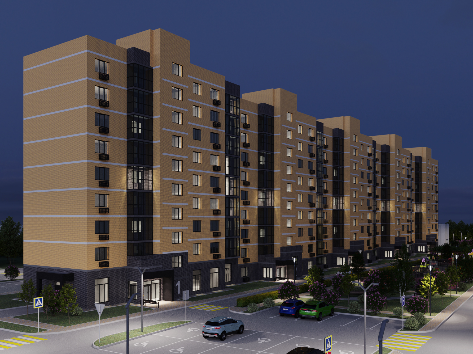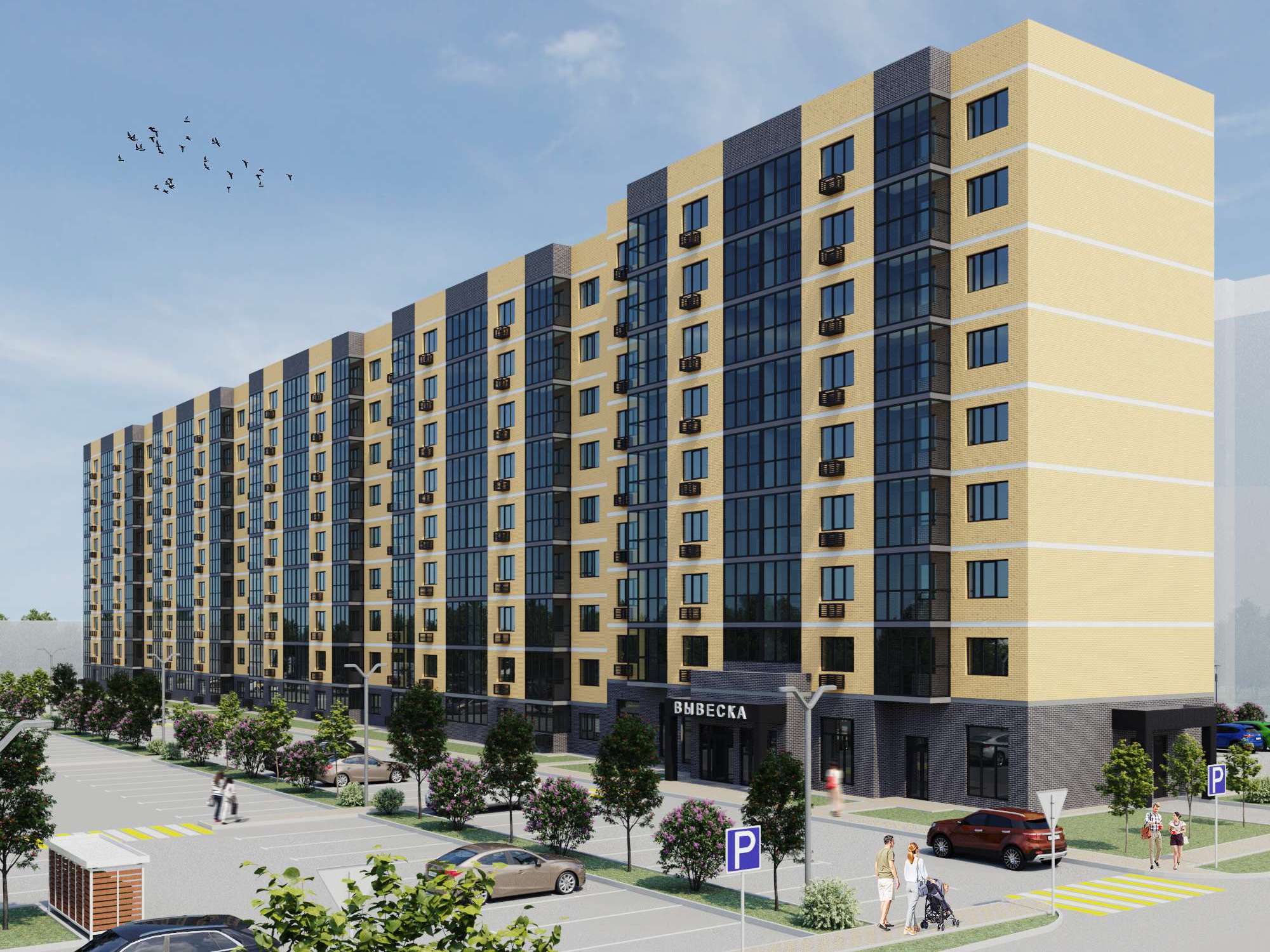 Во дворе МЖК Авиатор будут расположены детская и спортивная площадки, а также две площадки для сбора мусора. Велосипедные дорожки проектом не предусмотрены.