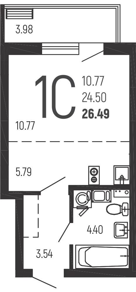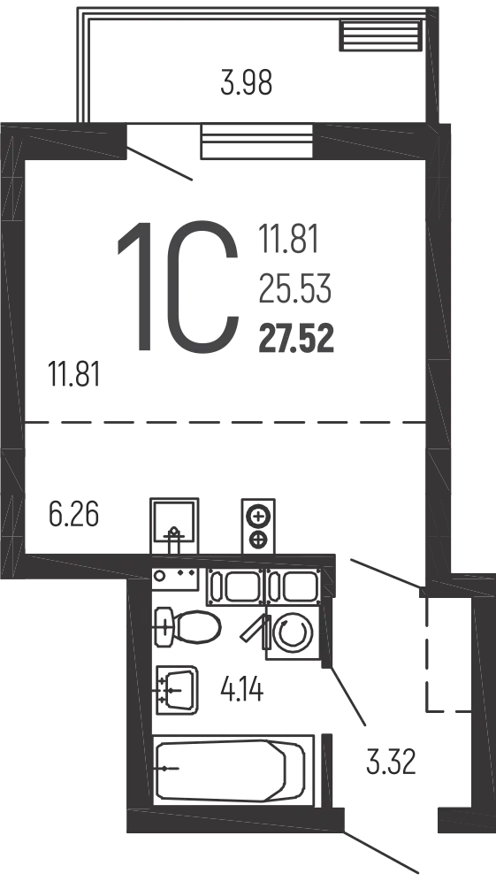 Студия, 26.04 м²